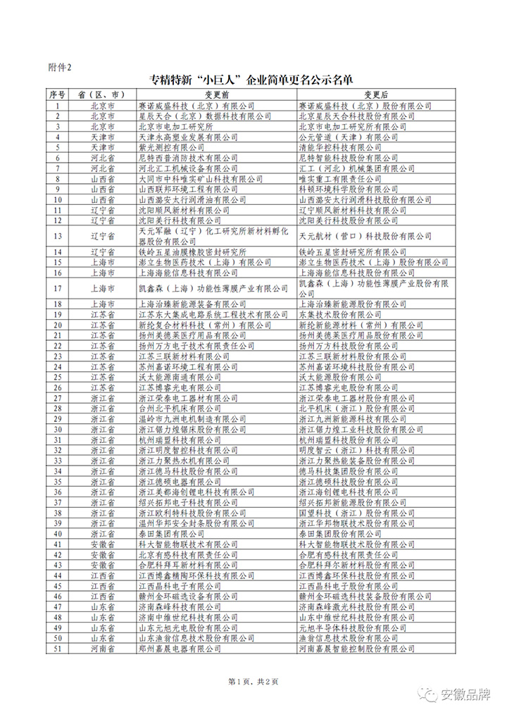 2、專精特新“小巨人”企業(yè)簡單更名公示名單