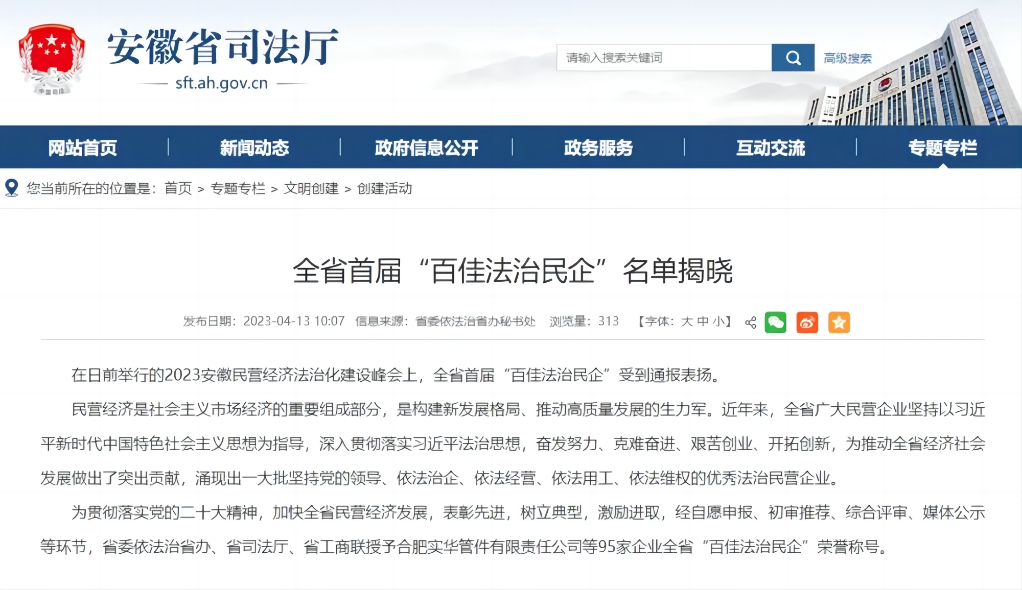 安徽司法廳揭曉全省首屆“百佳法治民企”名單
