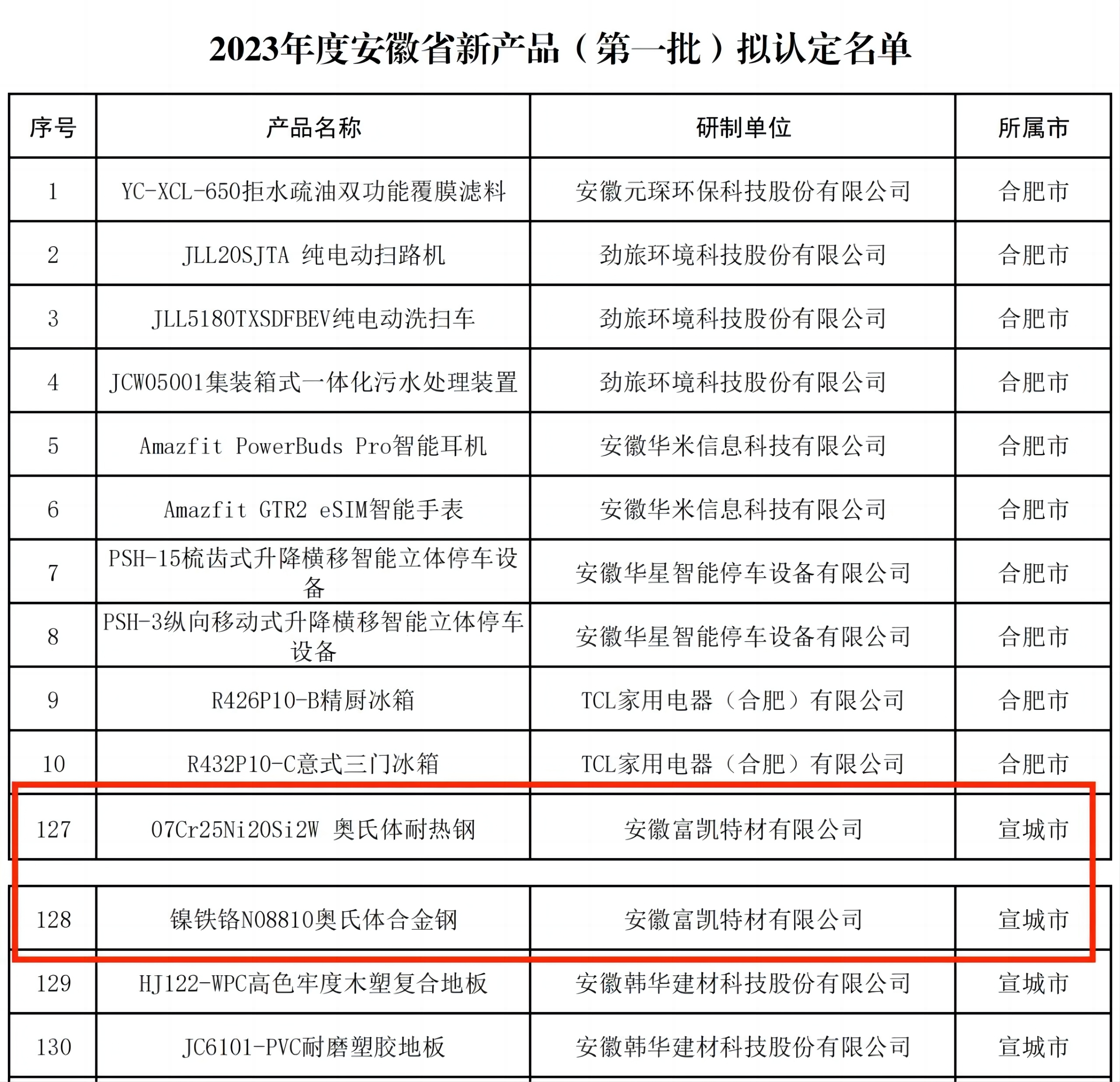 公司兩個新產(chǎn)品列入2023年度安徽省新產(chǎn)品(第一批)擬認(rèn)定名單