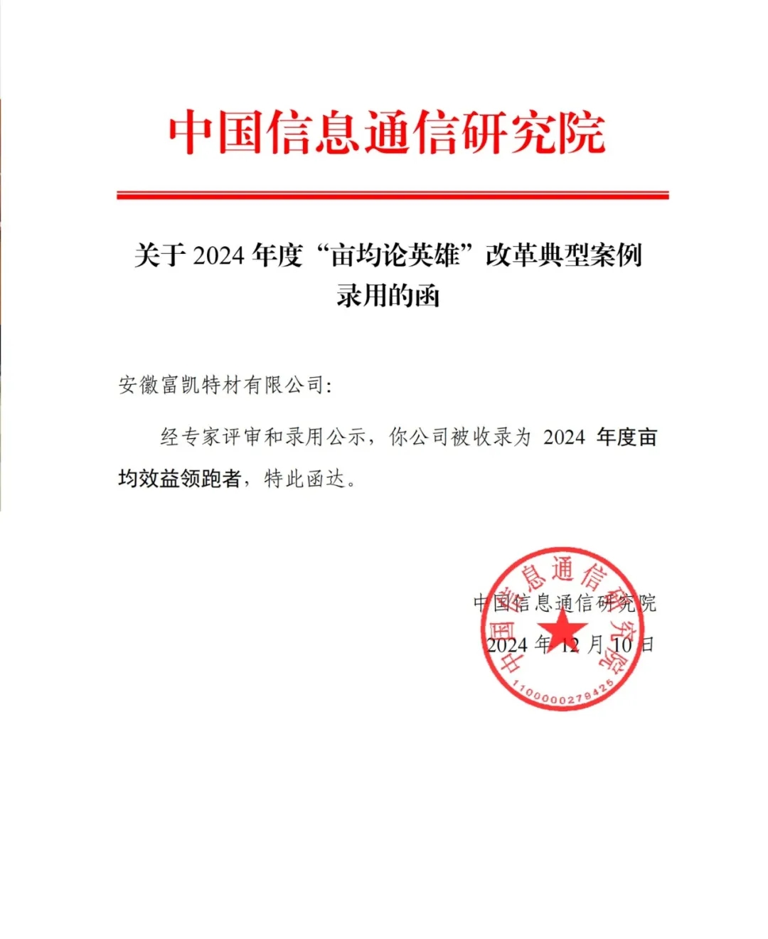 富凱特材入選國(guó)家2024年度“畝均論英雄” 改革典型案例