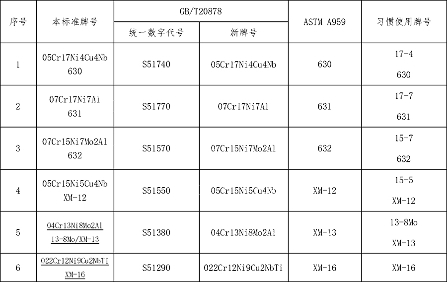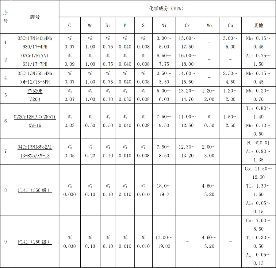 表2 沉淀硬化不銹鋼/時效鋼牌號及化學(xué)成分