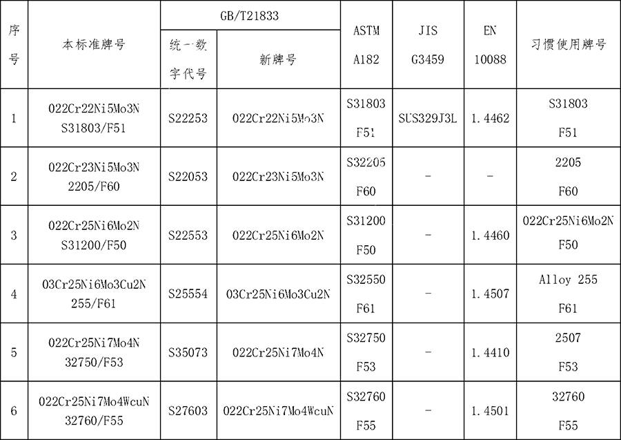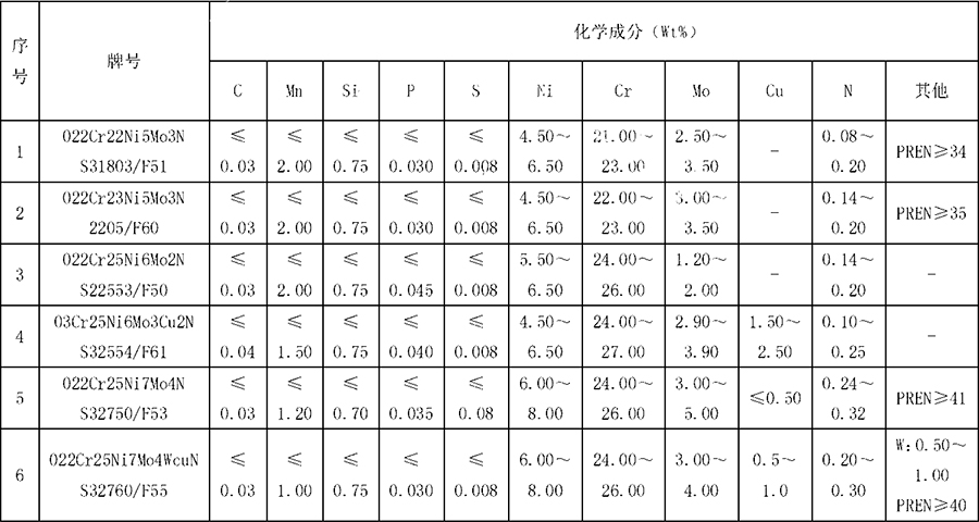 表3 奧氏體-鐵素體雙相不銹鋼牌號及化學(xué)成分