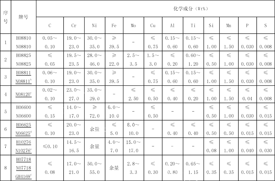 c: N08120其他元素成分要求Nb: 0.4~0.9; B≤0.010; Co≤3.0; N: 0.15~0.30; W≤2.5