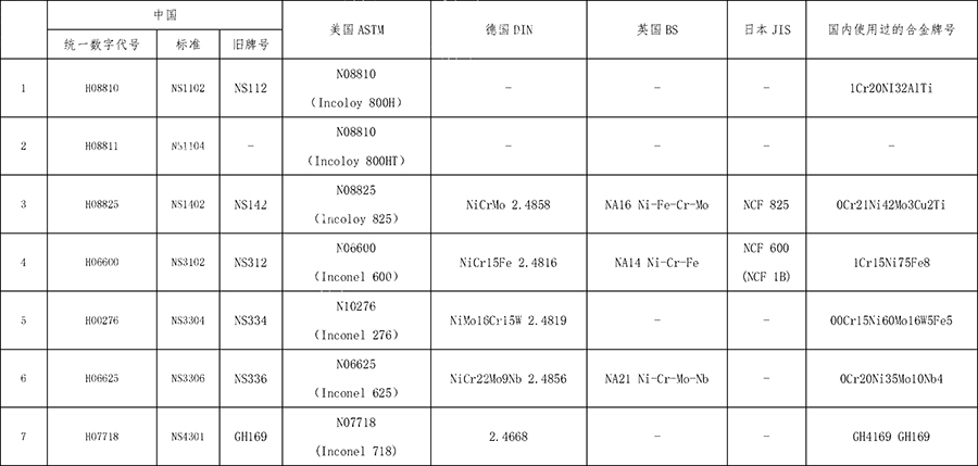 表4 鎳基、鐵鎳基合金牌號及化學(xué)成分